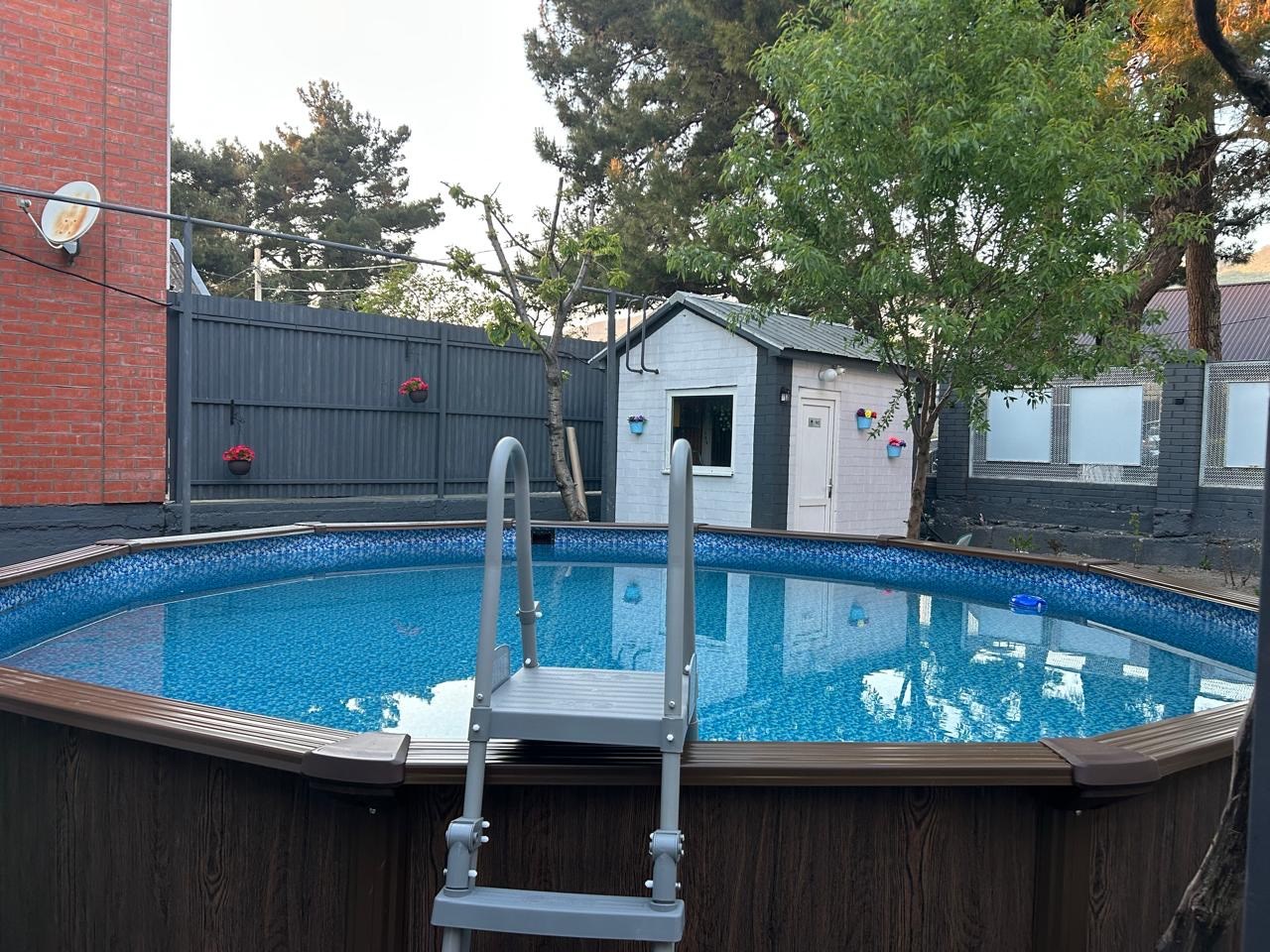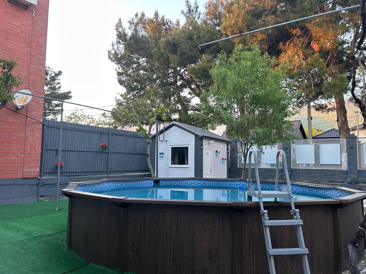 Лестница с подъемными ступенями ограничит свободный доступ в бассейн для детей.