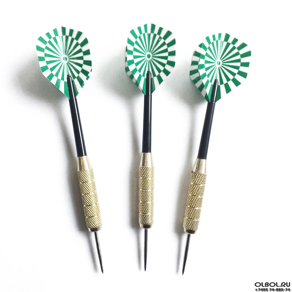 Набор дротиков для дартса DAR2013, состоящий из 3-х дротиков с зеленым узорчатым флайтом и медным держателем. Каждый дротик имеет вес 16,3 грамма, что делает их подходящими для использования как начинающими, так и опытными игроками. Толщина хвата (баррель) составляет 8 мм.