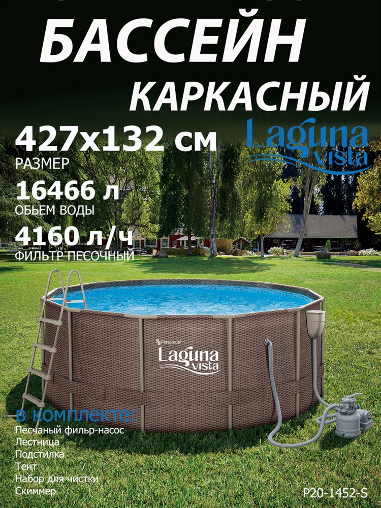 Каркасный бассейн / 427х132см / Laguna Vista P20-1452-S + песочный фильтр, лестница, тент, подстилка, скиммер, набор для чистки