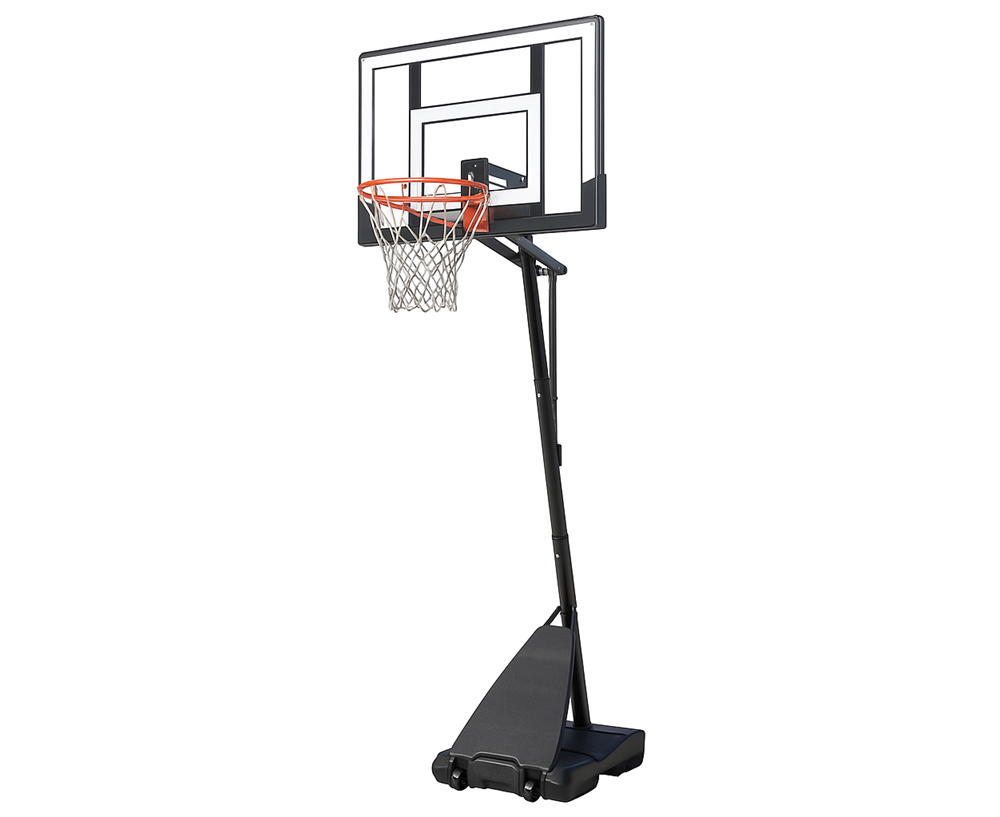 Стойка оснащена прочным щитом из ПЭТ, который выдерживает активное использование, а толщина щита обеспечивает надёжность и долговечность. В комплект входит сетка для кольца, что делает игру более реалистичной и безопасной.